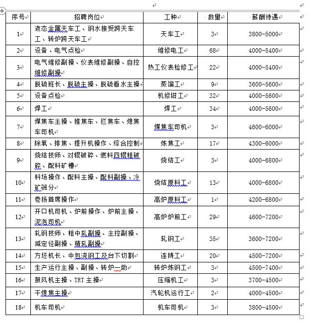 酒鋼集團榆中鋼鐵有限責任公司現因生產需要,現面向社會公開招聘300名崗位操作人員,現將有關事宜通知如下: