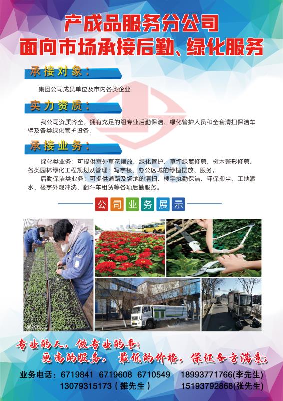 產成品服務分公司面向市場承接后勤、綠化服務