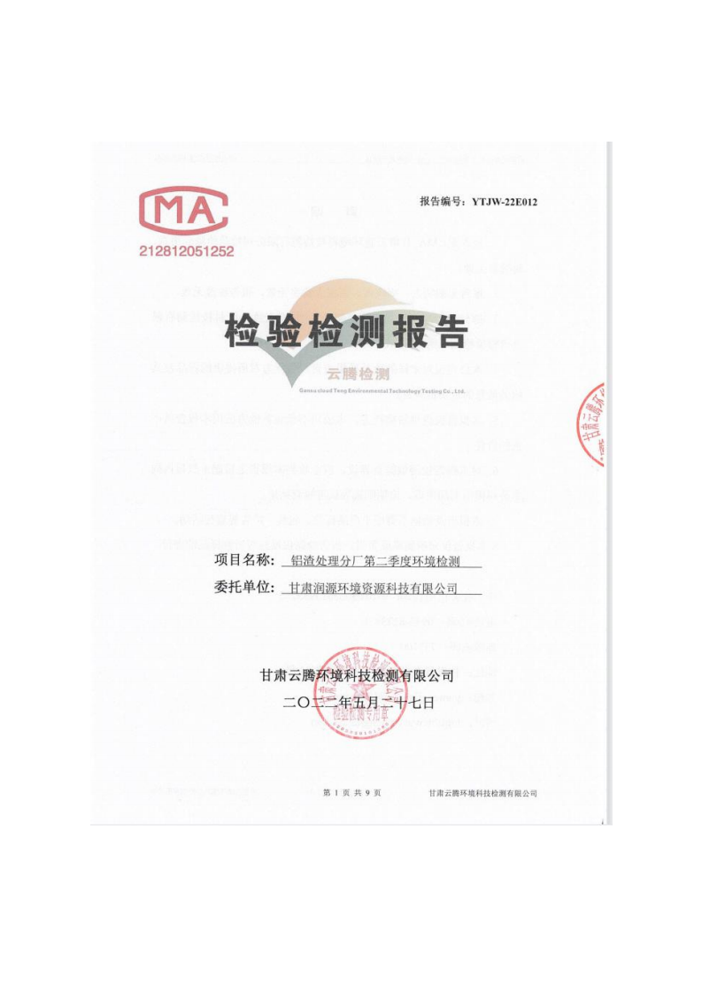 甘肅潤(rùn)源環(huán)境資源科技有限公司鋁渣處理分廠2022年環(huán)境信息公開(kāi)