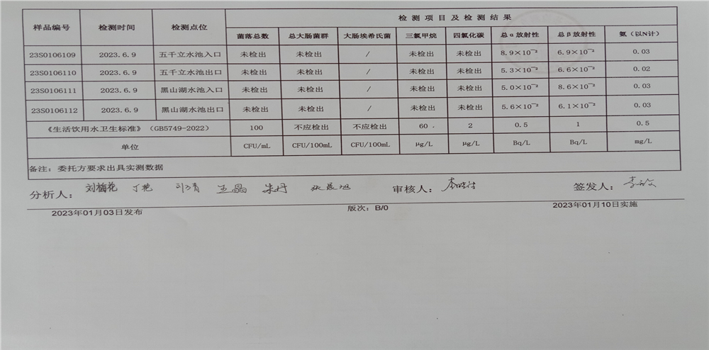 甘肅潤源環境資源科技有限公司水源地水質2023年第二季度公示